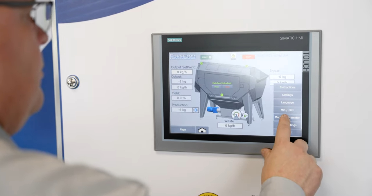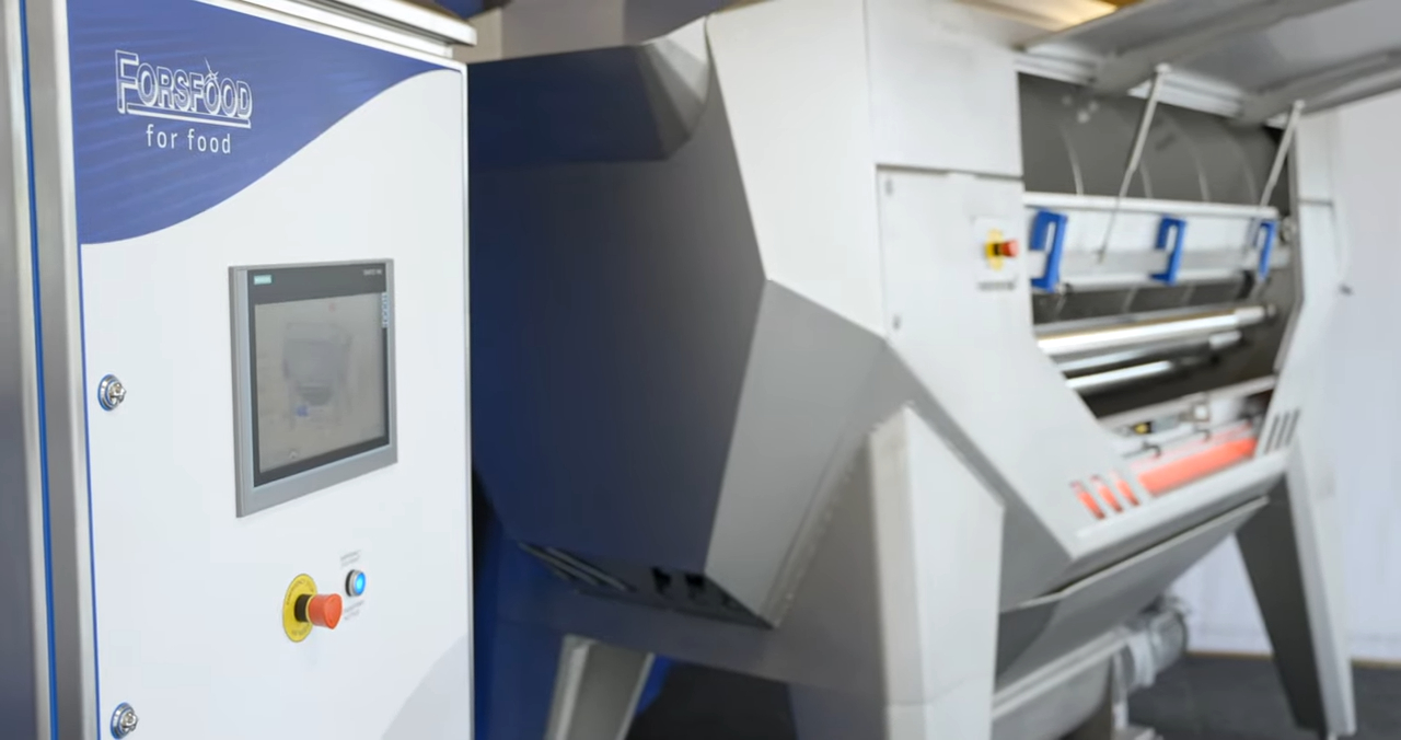 Watch how the Usva re-peeling stage operates with feeding, rinsing and transfer steps in a continuous Forsfood line setup. Explore our industrial peelers ›