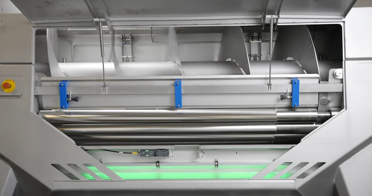 Usva uses dedicated re-peeling knife rollers optimized for the softer surface of steam-peeled products. The geometry, spacing and rotation control are engineered to re-peel gently and evenly, avoiding over-peeling that can occur with standard knife systems.