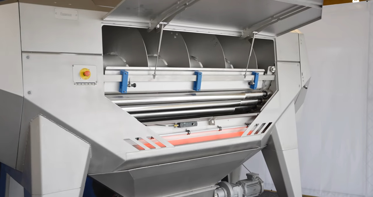 Aurora Borealis Usva is equipped with ten knife rollers designed for accurate re-peeling of steam-peeled root vegetables. Its controlled product rotation ensures a clean, renewed surface while the durable stainless-steel structure supports hygienic, reliable operation in high-capacity processing.