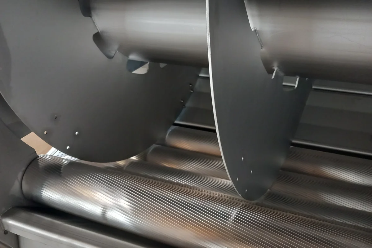The machine processes approximately 600–1100 kg/h, depending on the raw material type, size and surface condition. Six- and ten-roller versions allow matching the capacity to your line requirements.